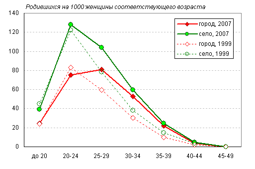 года). Но, если на селе рождаемость женщин 25 лет и старше резко