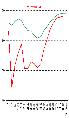 с 1979 по 1998 год в России в целом различия в уровне смертности