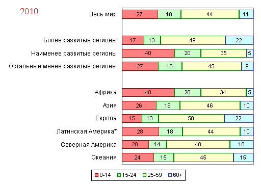 мира и отдельных регионов, 2010 год, средний вариант, %