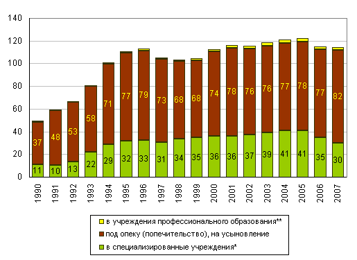 под опеку или на усыновление), а в 2004 году это число увеличилось