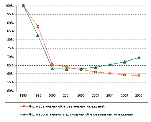 услугами дошкольных учреждений (экономический рост привел к тому,