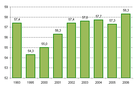 остается низким – он не достигает и 60%, что привело в 2004 году