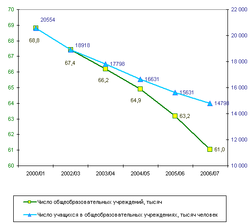 в 2005/06 учебном году сеть сократилась уже на 1700 школ, а в 2006/07