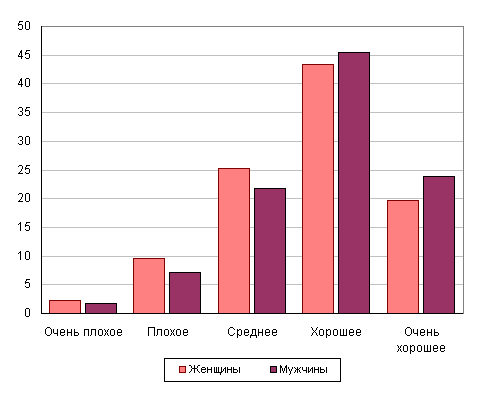 здоровье - 12% против 9% мужчин, и реже о хорошем - 63% против 69%
