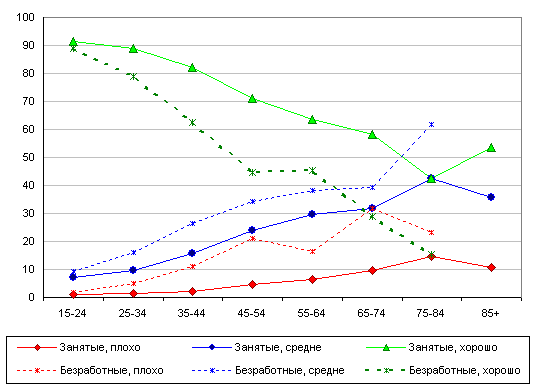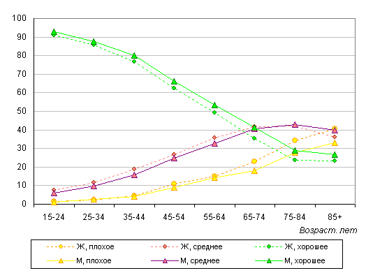 свое здоровье как хорошее и очень хорошее, а в пожилых возрастах,