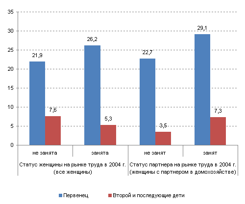 рожали женщины, имевшие работу в 2004 году, однако детей более высоких