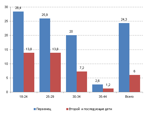 рождения первенца у 18-24-летних и 25-29-летних женщин уже очень