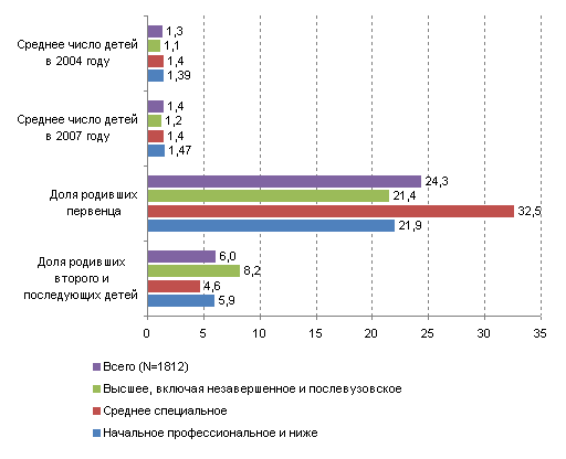 шли на рождение второго ребенка, чем женщины с более низким образованием.