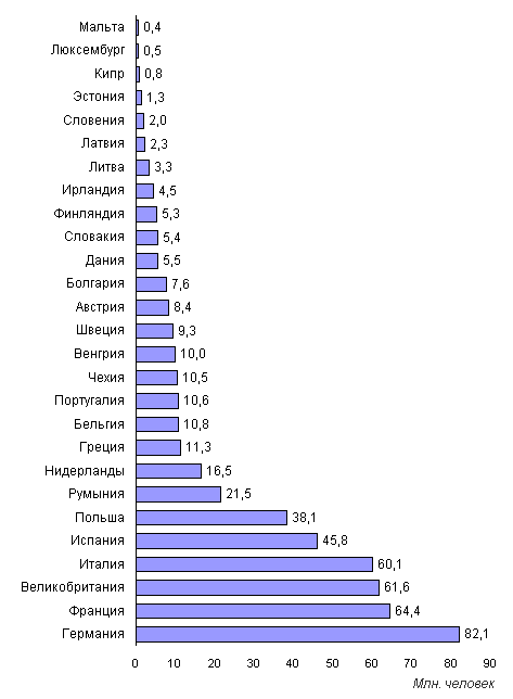 общей численности населения Европы-27) сосредоточены в пяти наиболее