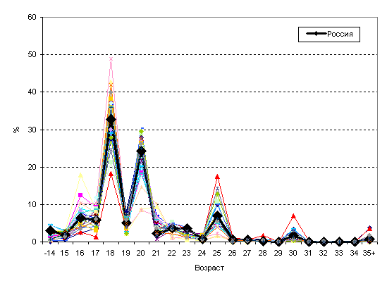 доминирует 18-летняя норма, но и 20-летняя норма ей не слишком уступает.