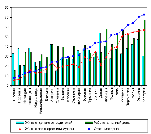 стран (в России, Румынии и Украине – 24 года - самый низкий в Европе).