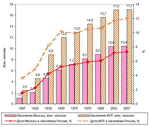 быстрого роста Москвы, интенсивно притягивавшей население со всех