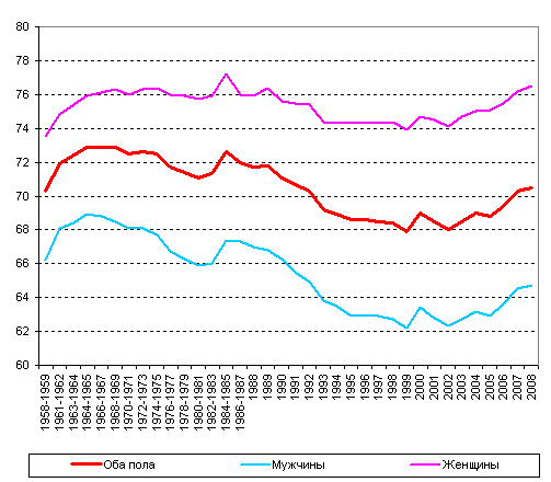 70 лет (у мужчин она приблизилась к 65 годам, у женщин - превысила