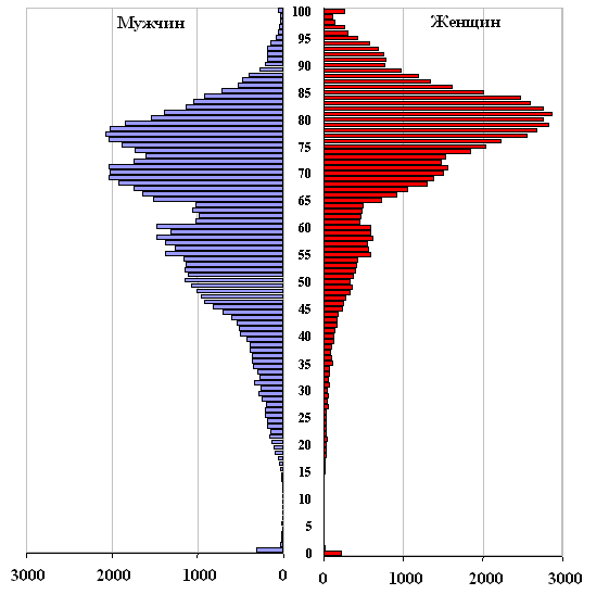 уже в этом возрасте показатели мужской смертности значительно выше,