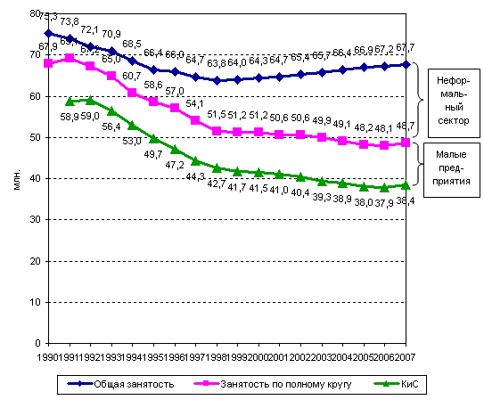 или менее 10% всех занятых, тогда как в 2007 году уже 19 млн. человек,