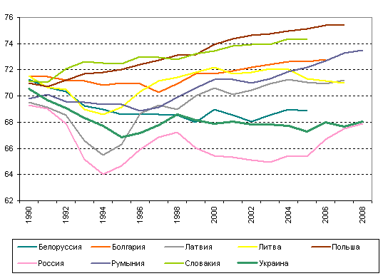 заметное улучшение до 2001 года, то в России, Украине и Белоруссии