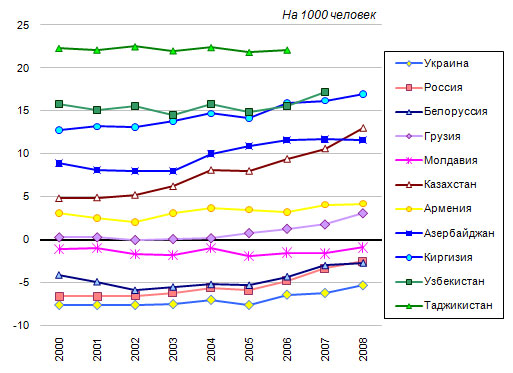Молдавии (-0,9%), на Украине (-0,3%) и в Азербайджане (-0,2%). Миграционный