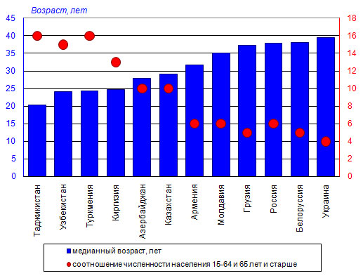 в странах с наиболее молодым населением. Если в Таджикистане и Туркмении