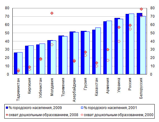 составлял на конец 2008 года от 4% в Таджикистане до 79% в Белоруссии.