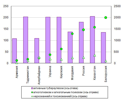 и Молдавии (1293). Наркомания и токсикомания более распространены