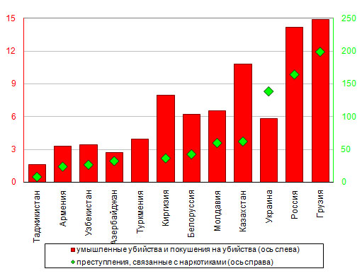 в 2008 году было выше всего в Грузии (198 на 100 тысяч человек),