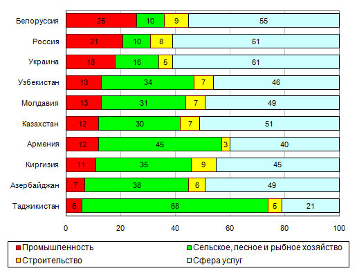 Страны СНГ заметно различаются структурой экономической
