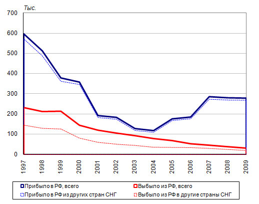 - их доля в общем числе прибывающих в Россию составляла в 1997-2009