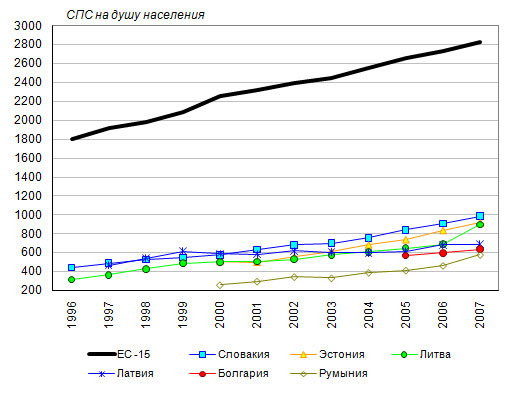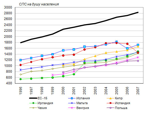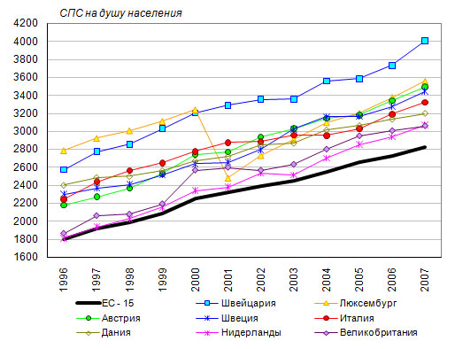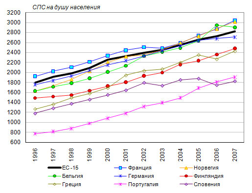 за 2007 год 2486 СПС на человека, по ЕС-25 – 2592. По странам Европейского