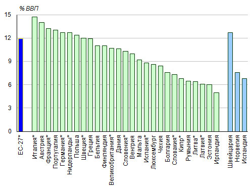 2006 году в целом по ЕС-27 11,9% ВВП, варьируясь от 5,0% в Ирландии
