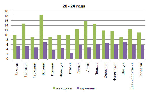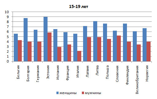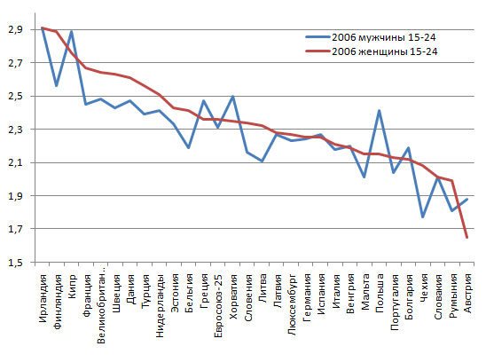 и для женщин в возрасте 15-24 лет характерно для Финляндии, Ирландии