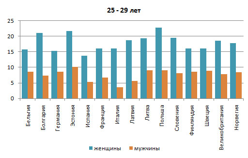 В 2006-м году, в Европе 30% женщин в возрасте 15-29