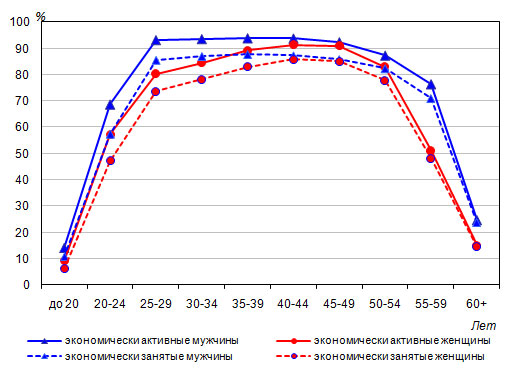 возраста 20 лет, напротив, была выше, чем экономическая активность