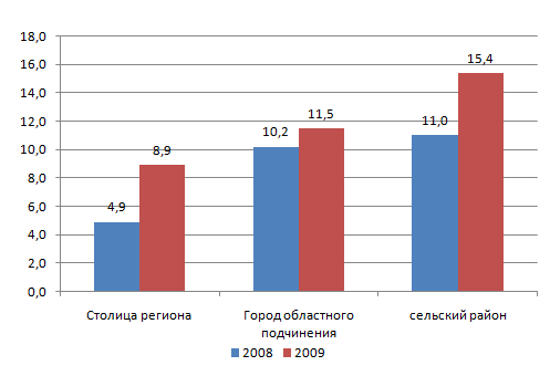 населенный пункт – 13,7% в 2008 году и 14,0% в 2009 году. При этом
