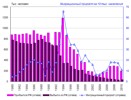 миграционный прирост был в середине 1990-х годов (845,7 тысячи человек,