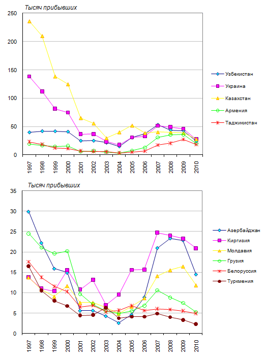 регистрации, в 2010 году из России в страны «ближнего зарубежья»