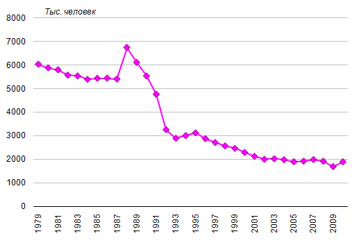 в конце 1980-х годов (792 тысячи человек в 1988 году), но затем