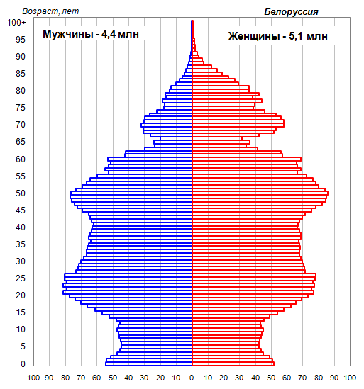 В населении Белоруссии превышение числа женщин над числом