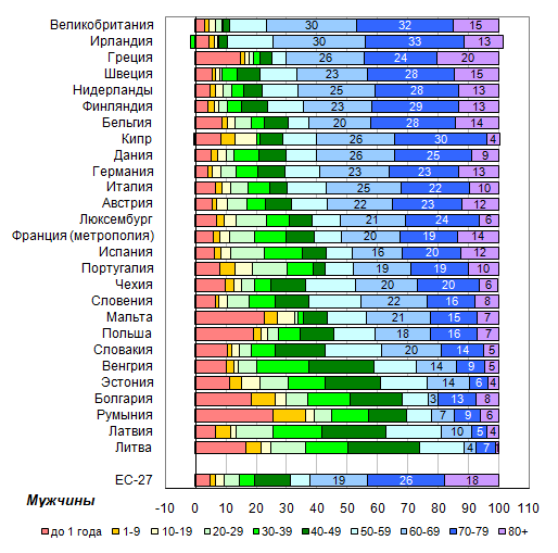 идет в ЕС-27 за счет снижения смертности на всех стадиях жизненного