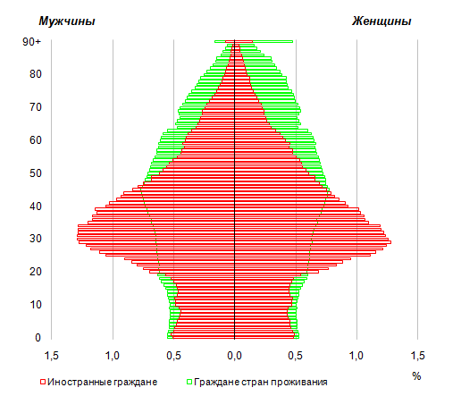 уроженцев других стран – 51,0%. Тем не менее, их возрастно-половые