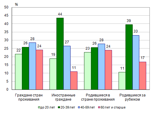 рабочих возрастах (20-39 лет) выше всего среди иностранных граждан