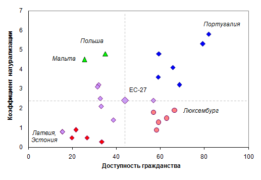 гражданами других стран ЕС). А во-вторых, коэффициент натурализации,