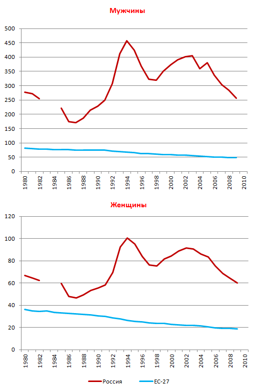 чем в ЕС-27 у мужчин и в 3 раза – у женщин. Пока трудно сказать,