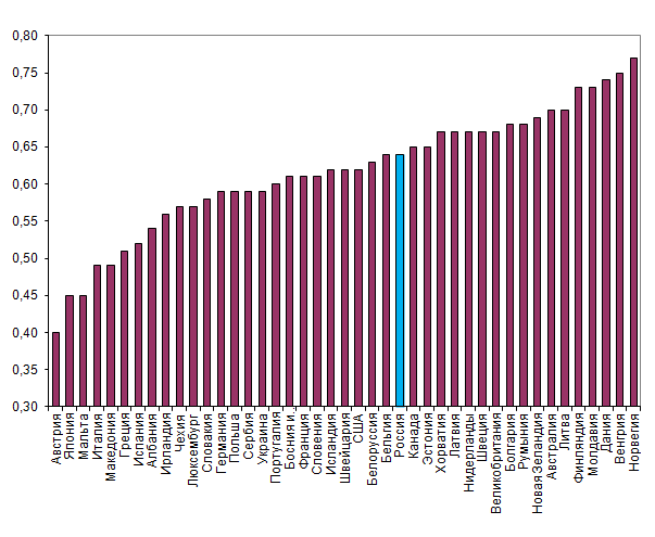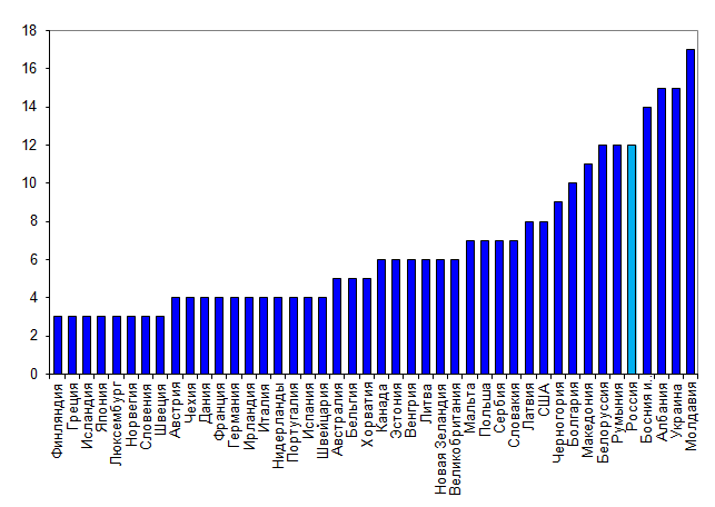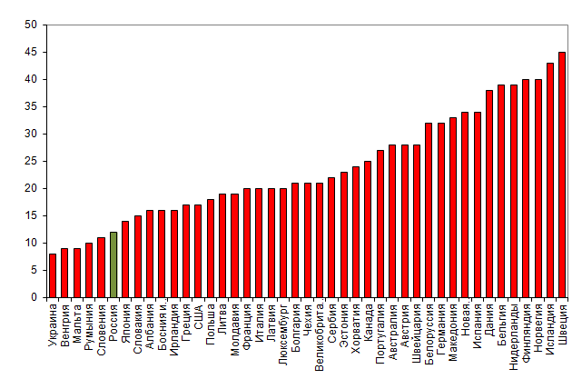 с конца (38 место из 43). Ниже России в рейтинге только Украина,