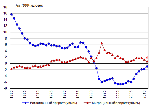 и 2011 годов отмечалось превышение числа родившихся над числом умерших,