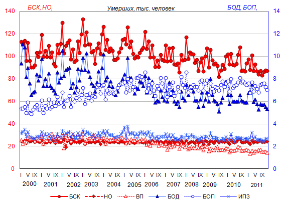 в январе-декабре 2011 года варьировался от 190 умерших на 100 тысяч