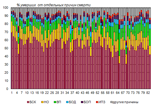 от общего числа умерших). Причиной смерти почти каждого третьего