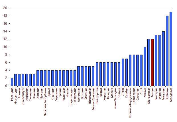 для 36 стран, по которым есть соответствующие данные; Россия в их