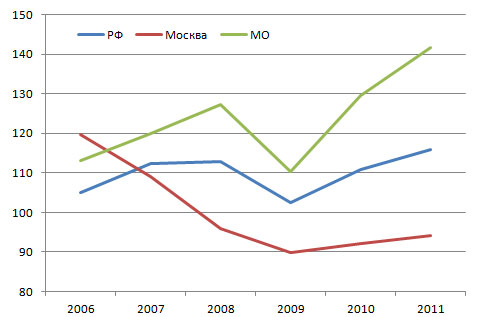 расти, и Подмосковье к 2005 году, а Москва к 2007 году достигли