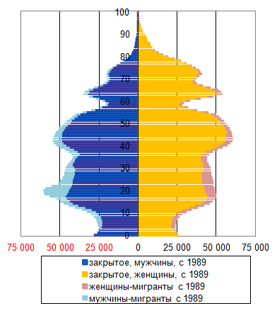 и продолжает прирастать жителями, на фоне продолжающейся убыли населения