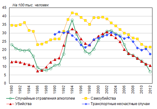 несчастных случаев, убийств и случайных отравлений алкоголем в последние